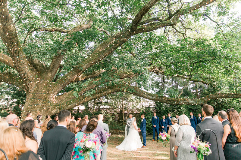 The mansion has a few different locations for your ceremony whether it's under the tree decorated in lights, down the path near a terrace, or within the ballroom itself that's filled with windows and natural light. There are so many great locations to choose from, but we've only experience a wedding that took place under the large tree.